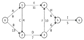 다음 공정표의 전체 소요 공기(工期)는?