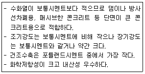 다음 설명에 적합한 시멘트의 종류는?