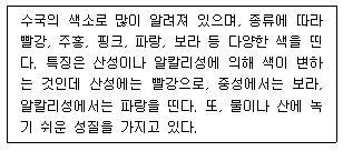 다음과 같은 특징을 갖는 식물 색소는?