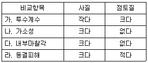 다음 표의 점토질과 사질지반의 비교 내용 중 옳은 것은?