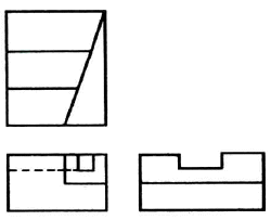 그림과 같이 어떤 물체를 제 3각법으로 투상한 투상도의 입체도로 가장 적합한 것은?