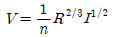 Manning 등류경험식(평균유속공식)에 대한 설명 중 틀린 것은?
