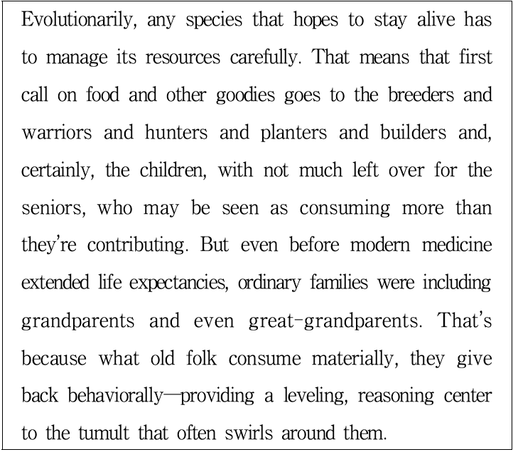 Modern medicine has brought focus to the role of old folk.