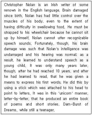 Christopher Nolan은 뇌 손상을 갖고 태어났다.
