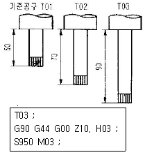 아래의 프로그램으로 머시닝센터 작업시 공구의 길이가 그림과 같을 때 H03에 대한 적합한 공구 길이 보정값은?