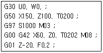 다음 CNC선반 프로그램에서 분당이송(mm/min)의 값은?