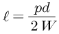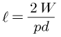레이디얼 엔드 저널 베어링에서 저널의 지름이 d(㎜)이고 레이디얼 하중이 W(N)일 때. 저널의 깊이 ℓ(㎜)를 구하는 식으로 옳은 것은?(단, 베어링 압력은 p(N/㎟)이다.)