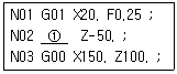 다음 CNC 프로그램에서 ①부분에 생략된 모달 G코드는?