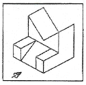 다음의 입체도에서 화살표 방향으로 보았을 때 투상한 도면으로 가장 적합한 것은?