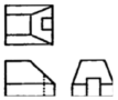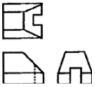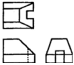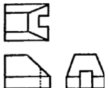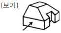보기 입체도에서 화살표 방향을 정면도로 할 경우 제 3각법에 의한 투상도로 가장 적합한 것은?