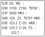다음 CNC 선반 프로그램에서 나사가공에 사용된 고정 사이클은 어느 것인가?