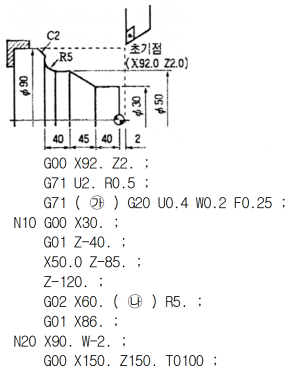 그림과 같은 복합 고정사이클 프로그램에서 빈칸 가, 나 에 말맞는 것은?