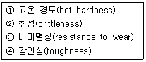 다음 중 절삭 공구용 재료가 가져야 할 기계적 성질 중 맞는 것을 모두 고르면