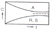 다음 그림은 농도-시간의 곡선이다. 이 곡선에 해당하는 반응식을 옳게 나타낸 것은?
