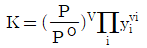 기상 반응계에서 평형상수 K가 다음과 같이 표시되는 경우는? (단, vi는 성분 I 의 양론계수이고