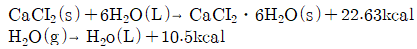 200g의 CaCl2가 다음의 반응식과 같이 공기중의 수증기를 흡수할 경우에 발생하는 열은 약 몇 kcal인가? (단, CaCl2의 분자량은 111이다.)