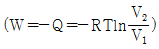 이상기체에 대하여 일(W)이 다음과 같은 식으로 표현될 때, 이 계의 변화과정은? (단, Q는 열, V1은 초기부피, V2는 최종부피이다.)