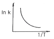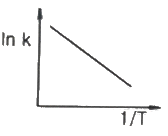 화학반응에서 lnk와 1/T 사이의 관계를 옳게 나타낸 그래프는?(단, k:반응속도 상수, T:온도를 나타내며, 활성화 에너지는 양수이다.)