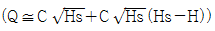 Q(H)=C√H로 나타나는 식을 정상상태(Hs)근처에서 선형화했을 때 옳은 것은? (단, C는 비례정수이다.)