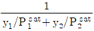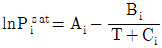 2성분계 혼합물이 기-액 상평형을 이루고 압력과 기상조성이 주어졌을 때 압력과 액상조성을 계산하는 방법을 "DEW P"라 정의할 때, DEW P에 포함될 필요가 없는 식은? (단, A, B, C는 상수이다.)