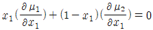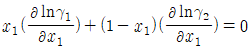 이성분혼합물에 대한 깁스 두헴(Gibbs-Duhem)식에 속하지 않는 것은? (단, γ는 활성도계수(activity coefficient), μ는 화학포텐셜, x는 몰분율이고 온도와 압력은 일정하다.)