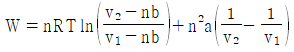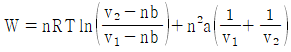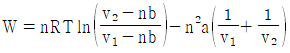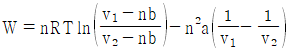 반데르 발스(Van der Waals)의 상태식에 따르는 n mol의 기체가 초기 용적(v1)에서 나중 용적(v2)으로 정온가역적으로 팽창할 때 행한 일의 크기를 나타낸 식으로 옳은 것은?