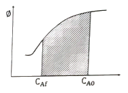 플러그흐름반응기에서 아래와 같은 반응이 진행될 때, 빗금 친 부분이 의미하는 것은? (단, ø는 반응 A→R에 대한 R의 순간수율(instantaneous fractional yield)이다.)