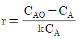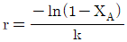 A→B인 1차 반응에서 플러그 흐름 반응기의 공간시간(space time) r를 옳게 나타낸 것은? (단, 밀도는 일정하고, XA는 A 의 전화율, k는 반응속도상수이다.)