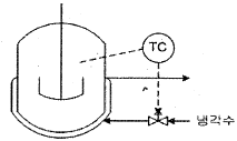 발열이 있는 반응기의 온도제어를 위해 그림과 같이 냉각수를 이용한 열교환으로 제열을 수행하고 있다. 다음 중 옳은 설명은?