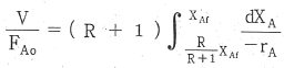 의 식에서 순환비 R을 0으로 하면 어떤 반응기에 적용되는 식이 되는가? (단, V:반응기부피, FAO:반응물유입몰속도, XA:전화율, -rA:반응속도)