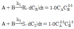균일계 액상 병렬 반응이 다음과 같을 때 R의 순간수율ø값으로 옳은 것은?