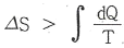 비가역 과정에 있어서 다음 식 중 옳은 것은? (단, S 는 엔트로피, Q 는 열량, T 는 절대온도이다.)