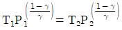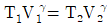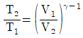 이상기체가 P1, V1, T1의 상태에서 P2, V2, T2까지 가역적으로 단열팽창되었다. 상관관계로 옳지 않은 것은? (단, γ는 비열비이다.)