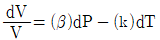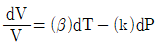 부피를 온도와 압력의 함수로 나타낼 때 부피 팽창률(β)과 등온압축률(k) 의 관계를 나타낸 식으로 옳은 것은?