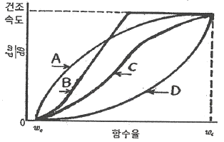 수분을 함유하고 있는 비누와 같이 치밀한 고체를 건조시킬 때 감률건조기간에서의 건조속도와 고체의 함수율과의 관계를 옳게 나타낸 것은?