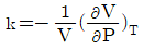 유체의 등온압축률(isothermal compressibility, k)은 다음과 같이 정의된다.