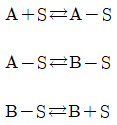 다음과 같은 반응메커니즘의 촉매 반응이 일어날 때 Langmuir 이론에 의한 A의 흡착반응 속도 rA를 옳게 나타낸 것은? (단, ka와 k_a는 각 경로에서 흡착 및 탈착 속도 상수, θ는 흡착분율, PA는 A성분의 분압이고, S는 활성점이다.)