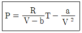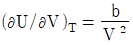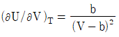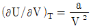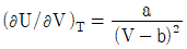 다음과 같은 반데르발스(van dar waals) 상태방정식을 이용하여 실제기체의 (∂U/∂V)T를 구한 결과로 옳은 것은? (단, V는 부피, T는 절대온도, a는 상수, b는 상수 이다.)