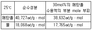 실험실에서 부동액으로 30mol% 메탄올 수용액 4L를 만들려고 한다. 25℃에서 4L의 부동액을 만들기 위하여 25℃의 물과 메탄올을 각각 몇 L씩 섞어야 하는가?