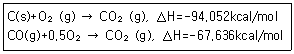다음 실험 데이터로부터 CO의 표준생성열(△H)을 구하면 몇 kcal/mol인가?