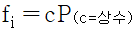 : 용액 중 성분 i의 퓨개시티, fi: 순수성분 i의 퓨개시티, xi : 용액의 몰분율, P : 압력)