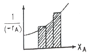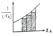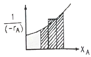 어떤 반응을 '플러그흐름반응기→혼합흐름반응기→플러그흐름반응기'의 순으로 직렬 연결시켜 반응하고자 할 때 반응기 성능을 나타낸 것으로 옳은 것은?