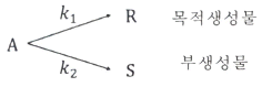 병렬반응하는 A의 속도상수와 반응식이 아래와 같을 때, 생성물 분포비율(rR/rS)은? (단, 두 반응이 차수는 동일하다.)
