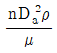 교반 임펠러에 있어서 Froude number(NFr)는? (단, n는 회전속도, Da는 임펠러의 직경, ρ는 액체의 밀도, μ는 액체의 점도이다.)
