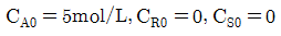 이 일어날 때 R 농도의 최대값은 얼마인가?(단, k1=1.5min-1, k2=3min-1이고 , 각 물질의 초기농도