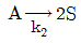 인 두 액상 반응이 동시에 등온 회분반응기에서 진행된다. 50분 후 A 의 90%가 분해되어 생성물 비는 9.1mol R/1mol S이다. 반응차수는 각각 1차일 때, 반응 속도상수 k2는 몇 min-1인가?