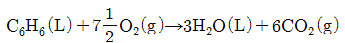 25℃에서 벤젠이 bomb 열량계 속에서 연소되어 이산화탄소와 물이 될 때 방출된 열량 을 실험으로 재어보니 벤젠 1mol 당 780890cal 이었다. 25℃에서의 벤젠의 표준연소열은 약 몇 cal 인가?(단, 반응식은 다음과 같으며 이상기체로 가정 한다.)