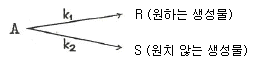 다음 반응에서 R의 순간 수율 (생성된 R의 몰수 /반응한 A의 몰수) 은?