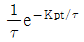 전달함수 G(s)가 다음과 같은 1차계에서 입력 x(t) 가 단위충격(impulse)인 경우 출력 y(t)는?