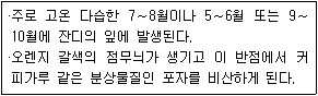 <보기>의 설명에 모두 해당하는 잔디의 병충해 현상은?